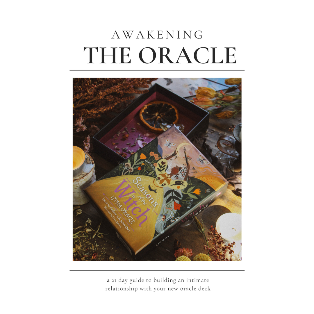 A 21 day guide to building an intimate relationship with your new oracle deck and a free month of access to The Unfolding membership, featuring monthly practices for living with the seasons - tarot, rituals, recipes, and real emotional work.